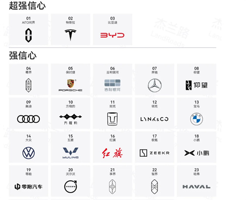 杰兰路报告的核心洞察之一,是品牌健康度的内涵正在不断深化。报告数据显示,当前新能源品牌的知名度已进入高位平台期,排名前50%的品牌知名度波动幅度极小,单纯追求声量的品牌建设模式已难以为继,“百人青睐指数”与“发展信心指数”成为品牌拉开差距的关键指标。