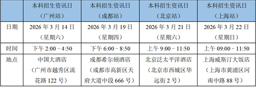 为配合首年进行“中国内地高考单独招生”政策,港城大将于2026年3月在广州、成都、北京及上海四地举办本科招生资讯日活动,为考生及家长提供权威、详尽的入学信息。